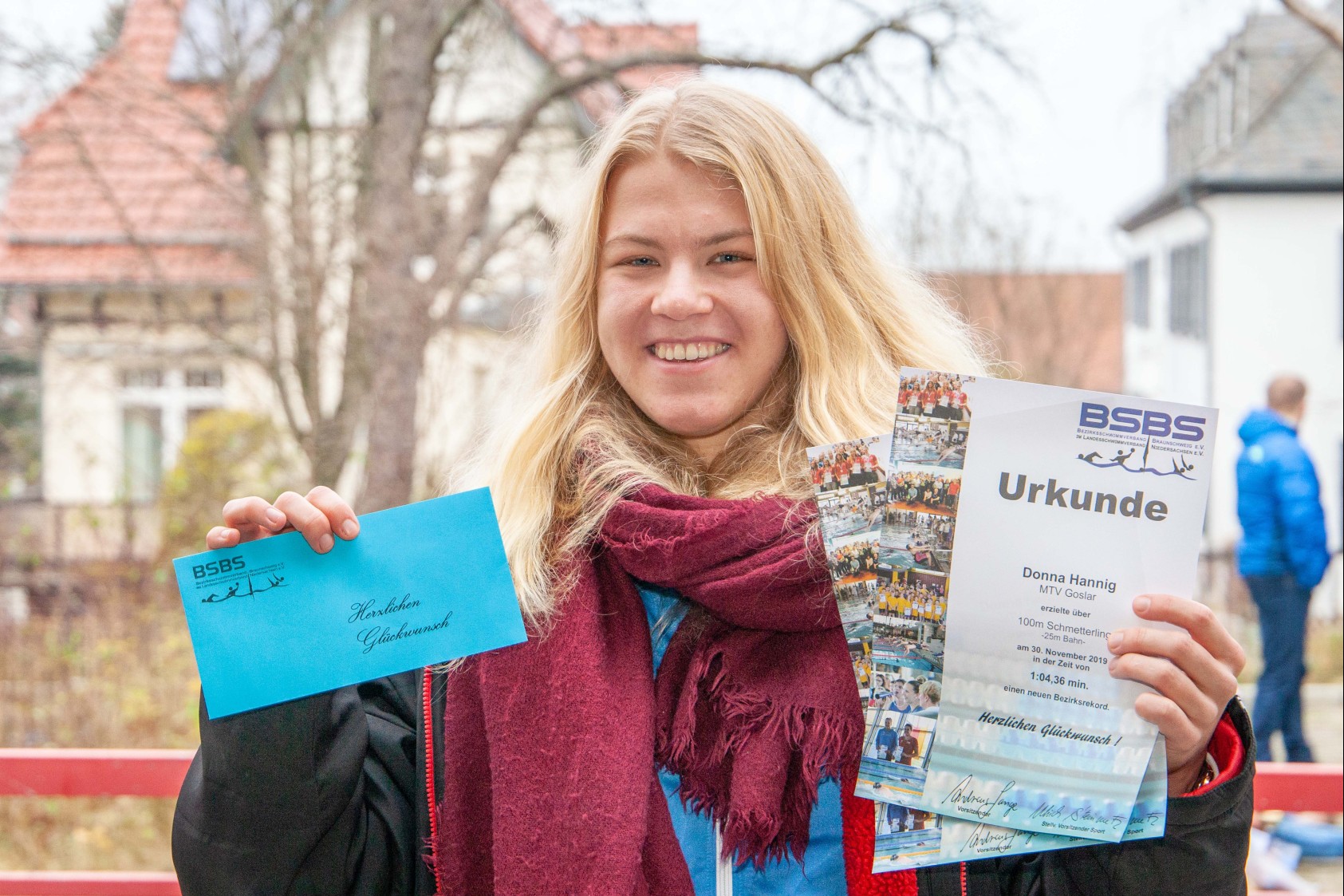 Die Entgegennahme der Urkunden für neue Rekorde für den Bereich des Bezirk Schwimmverbandes Braunschweig konnte nicht wie gewohnt innerhalb der Sprintmeisterschaften stattfinden. So wurde die Nikolausaktion des Vereins dafür genutzt, um die Urkunden für die erzielten Bezirksrekorde an die beiden Rekordschwimmerinnen auszuhändigen. Verbunden mit den Rekorden ist auch eine kleine Geldprämie!