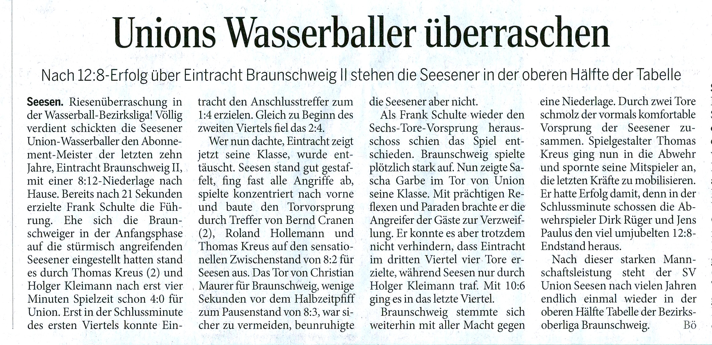 Hier ein Bericht von Norbert Böttinger aus dem Seesener Beobachter vom 18.01.2014 zum Spiel Seesen gegen Eintracht Braunschweig