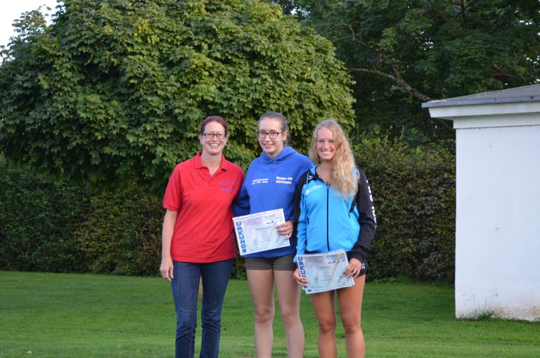 Anna-Christine Grüne nutzte dazu den Trainingsauftakt der TWG Göttingen und überreichte die Urkunden an die beiden Schwimmerinnen.