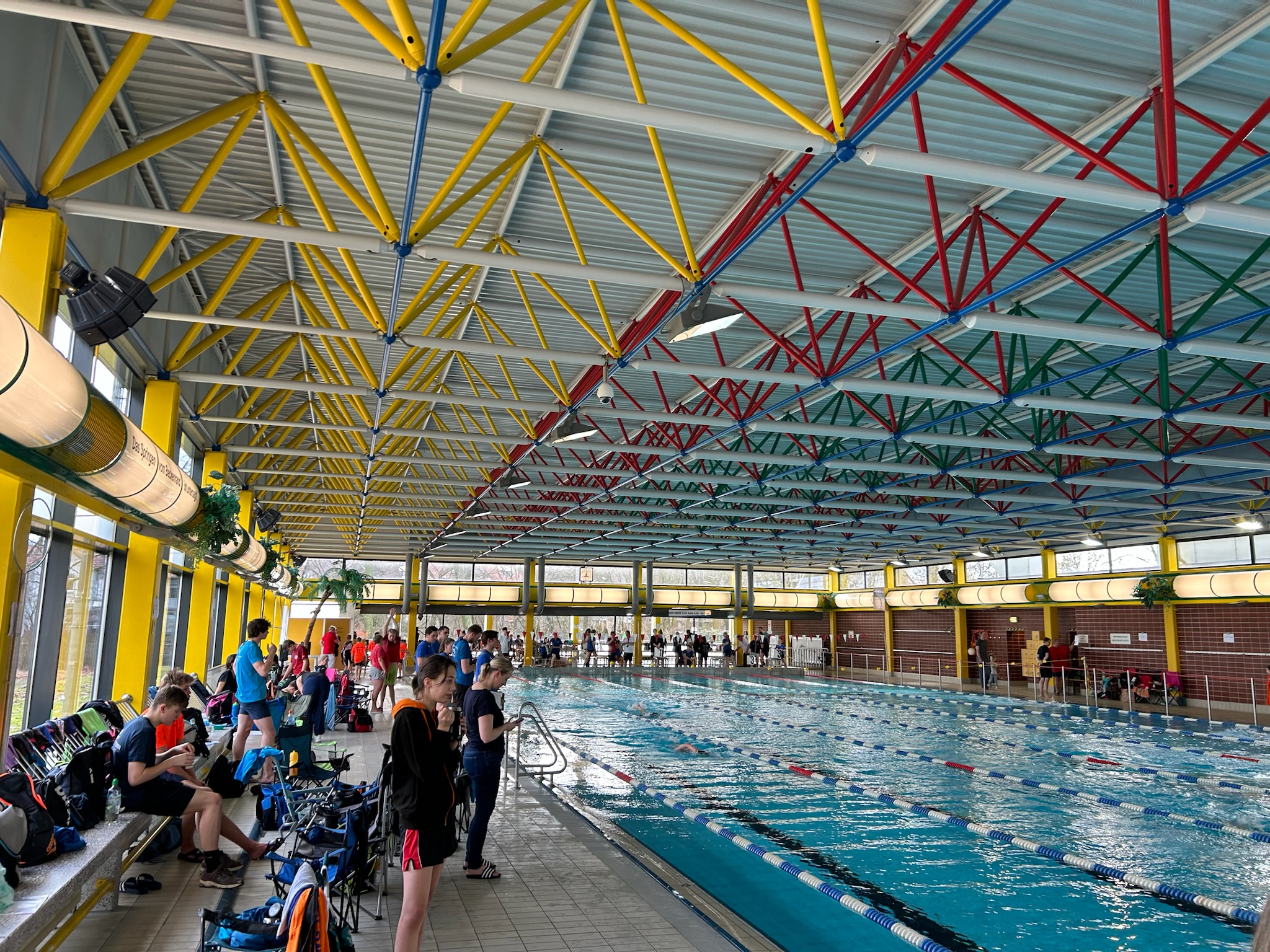 Einige der Aktiven, Trainer und Betreuer trafen sich am nächsten Tag in Salzgitter gleich zum neu hinzugenommenen BSBS-Pflichtzeitenmeeting. Hier konnten ebenfalls mit Elektronik noch Zeiten über die längeren Strecken auf der Kurzbahn geschwommen werden.