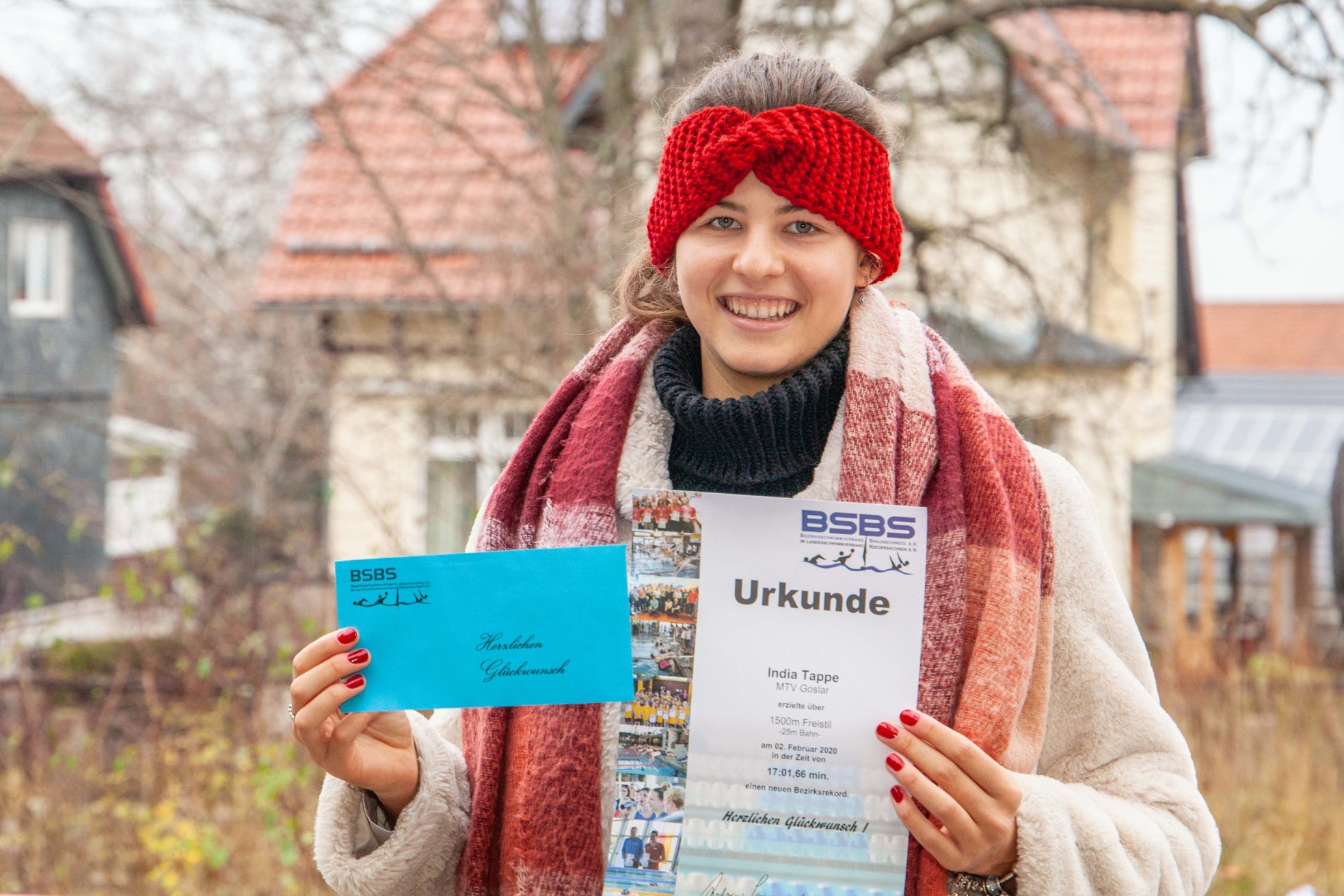 Die Entgegennahme der Urkunden für neue Rekorde für den Bereich des Bezirk Schwimmverbandes Braunschweig konnte nicht wie gewohnt innerhalb der Sprintmeisterschaften stattfinden. So wurde die Nikolausaktion des Vereins dafür genutzt, um die Urkunden für die erzielten Bezirksrekorde an die beiden Rekordschwimmerinnen auszuhändigen. Verbunden mit den Rekorden ist auch eine kleine Geldprämie!