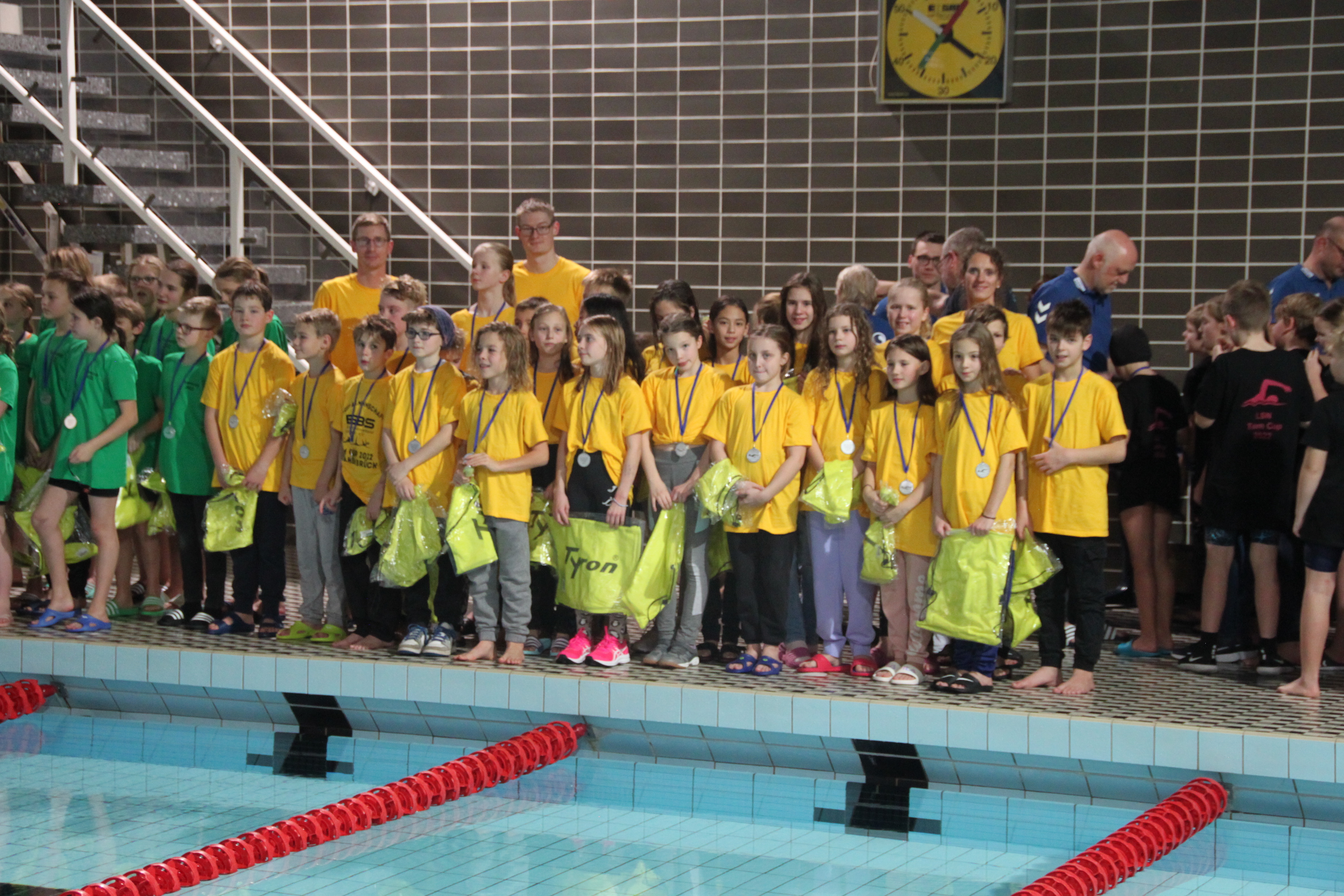 Unsere Schwimmer:innen kämpften um jeden Meter und gewannen den einen oder anderen Lauf. Da es keine Zwischengesamtwertungen gab, war es bis zum Ende spannend, wer die Nase vorne haben würde. Um 16:45 Uhr war es dann soweit.
