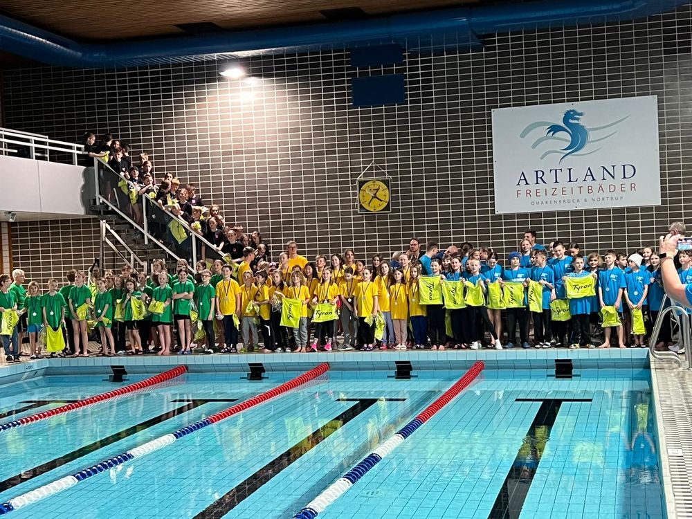 Startberechtigt waren die Jahrgänge 2011-2013 und in jedem Jahrgang und Geschlecht ging über die 50m zwei Schwimmer*innen und über 100m ein/e Schwimmer*in ins Wasser. Die geschwommenen Zeiten wurden dann in Fina-Punkte umgerechnet und alles zu einem Gesamtergebnis addiert. Bei Disqualifikation oder kein Antreten gab es Nullpunkte. Deshalb hatten wir als Bezirk schon einen großen Nachteil. Zwar hatten die anderen Bezirke auch krankheitsbedingte Ausfälle, aber sie konnten alle Starts besetzen. Mitausnahme Bezirk Lüneburg, die zwei Staffel nicht besetzen konnten.