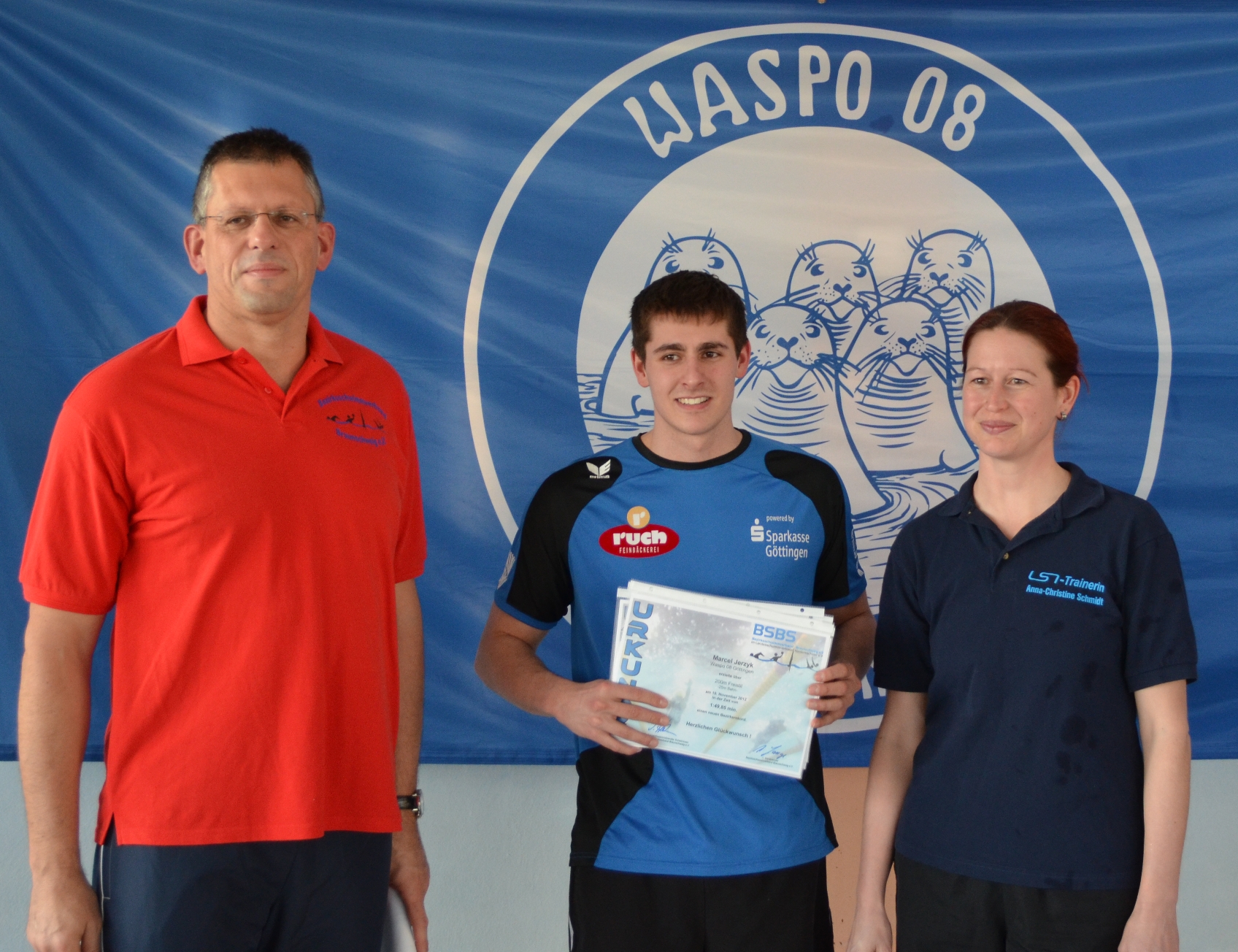 Anlässlich des Tages der offenen Tür des Stützpunktes Göttingen am 10. Februar 2013 wurde Marcel Jerzyk (Waspo 08 Göttingen) von Andreas Lange für vier neue Bezirksrekorde, die er im November 2012 aufstellte, geehrt.