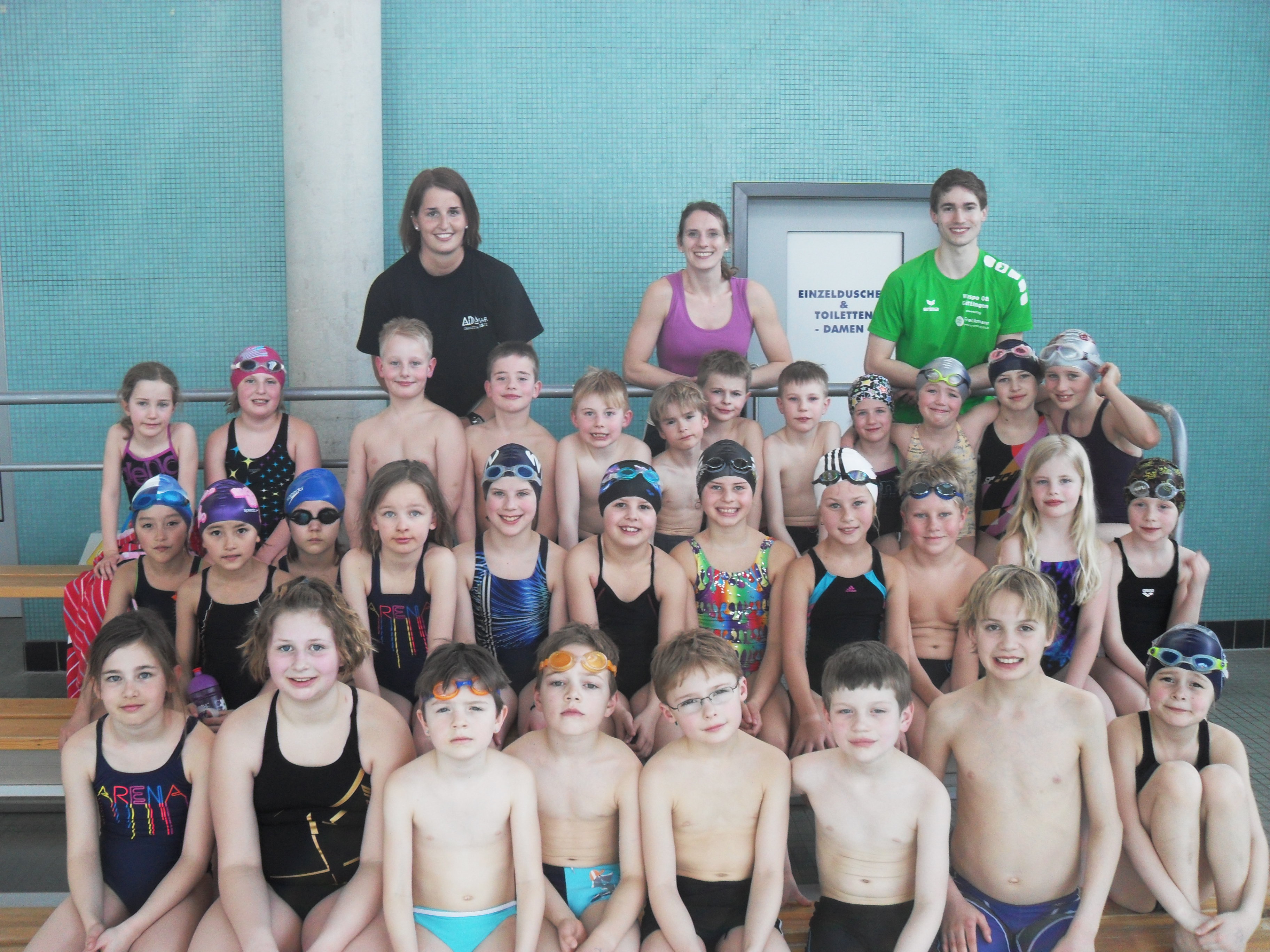 Die Energiespeicher wurden fleißig aufgefüllt und schnell war die Mittagspause zu langweilig, es sollte wieder Bewegung her, alle wollten wieder raus zum Sport! Bei so viel Einsatzwillen wollten wir natürlich keinen bremsen und suchten die Jacken und Mützen wieder raus: auch in einem verschneiten Fußballstadion gibt es gute Möglichkeiten, zumindest die Tribünen zum Training auszunutzen. Das zweite Wassertraining verging wie im Flug und schon war unser Tag zu Ende. Zusammenfassend bleibt, dass es natürlich noch große Unterschiede bei unseren Jüngsten gab, alle sich aber prima bis zum Ende durchgebissen haben und einfach so weitermachen sollen. Wir waren sehr zufrieden mit Euch und hoffen, dass Ihr alle so fleißig weiter trainiert, die nächsten KMK-Wettkämpfe besucht und dann bald wieder zu einem Lehrgang zu uns kommt.