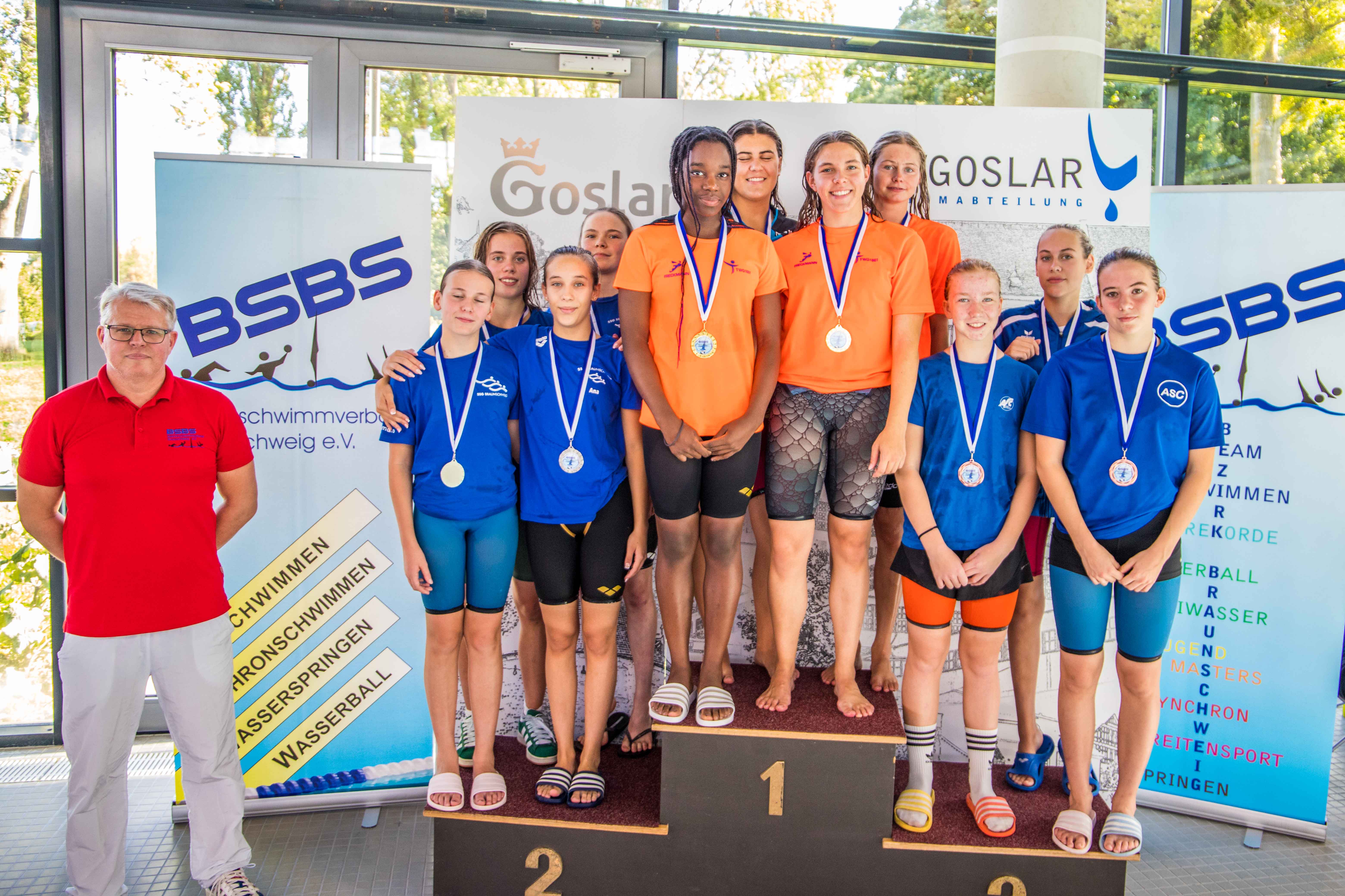 Ein zweiter Platz in der Schmetterlingsstaffel hinter dem MTV Goslar änderte nichts am Sieg der SSG Braunschweig in der weiblichen Jugend D. Jalina Chiara Döppner, Lilja Kroll, Sarah Abu-Mugheisib, Hannah Lage und Nila Kludas kamen auf eine Siegerzeit von 26:10,43 Minuten, der MTV Goslar benötigte 01:26,24 Minuten mehr. Auf dem dritten Platz belegte der TV Jahn Wolfsburg.